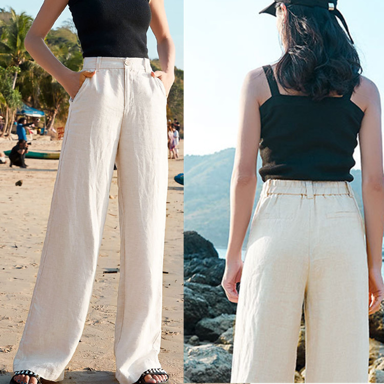 Art der Ware | Modische Leinenhosen Frauen lässige gerade Hosen lockere Hanfhosen |